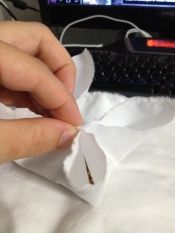 Step 3:– From the center of each edge, pull the fabric together above the seed. The corners of the square will then stick out.