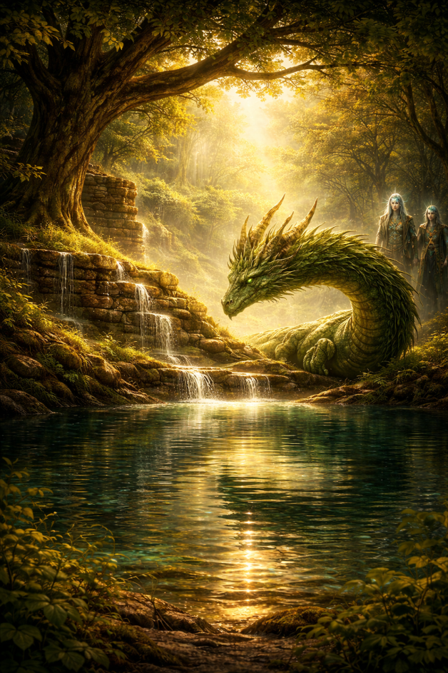 It is not enough to say that Suulazultsur’s scales were green. They were, but that description cannot do them enough justice. Their colour was rich, deep, and radiated a kind of vibrancy and life that only one so connected to the natural world as she could ever hope to display. Much like her cousin Doranth, her draconic form was not atypical to what most folk would think of when you say the word ‘dragon.’ She was far from the largest of her kind, and it was said that even in her draconic form that she was small enough to walk between the trees of her forest. Vitality and power suffused her very being, and it was said that her strength was a reflection of the health of the life she shepherded.